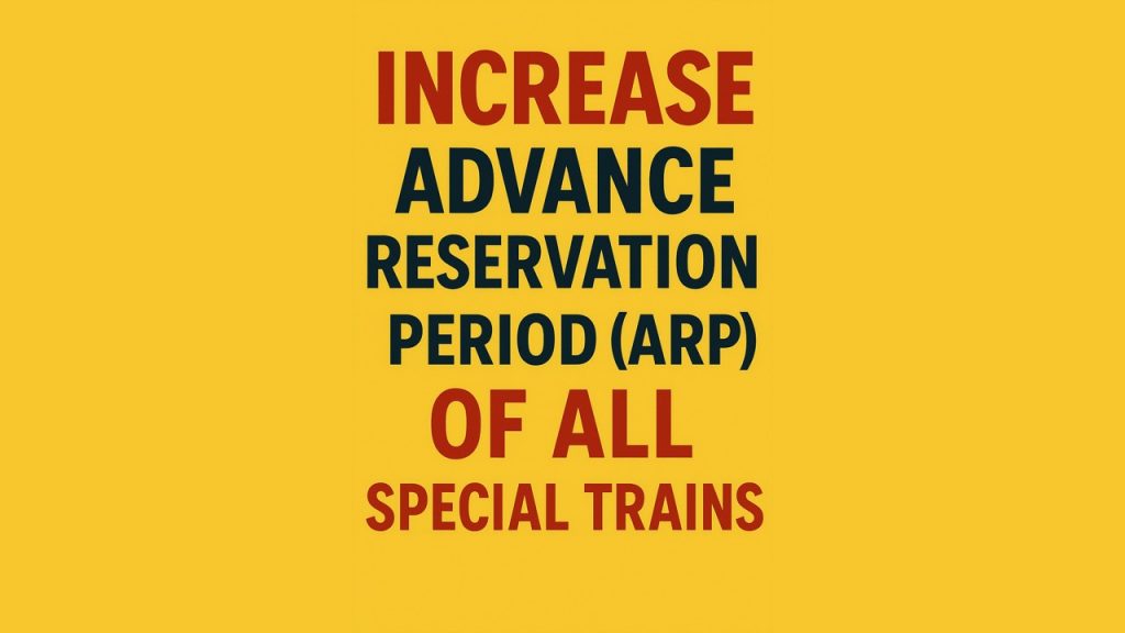 Here’s the latest official guidance from Indian Railways on the Advance Reservation Period (ARP) for Special Trains: