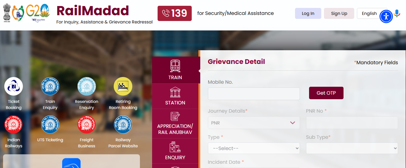 RailMadad is the official grievance/inquiry/assistance portal of Indian Railways.