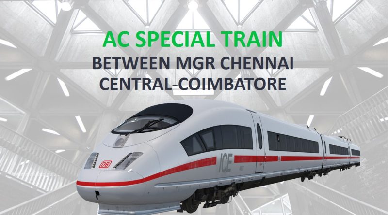AC Special train between MGR Chennai Central-Coimbatore AC Special train between MGR Chennai Central-Coimbatore (Train No. 06027 / 06028) time